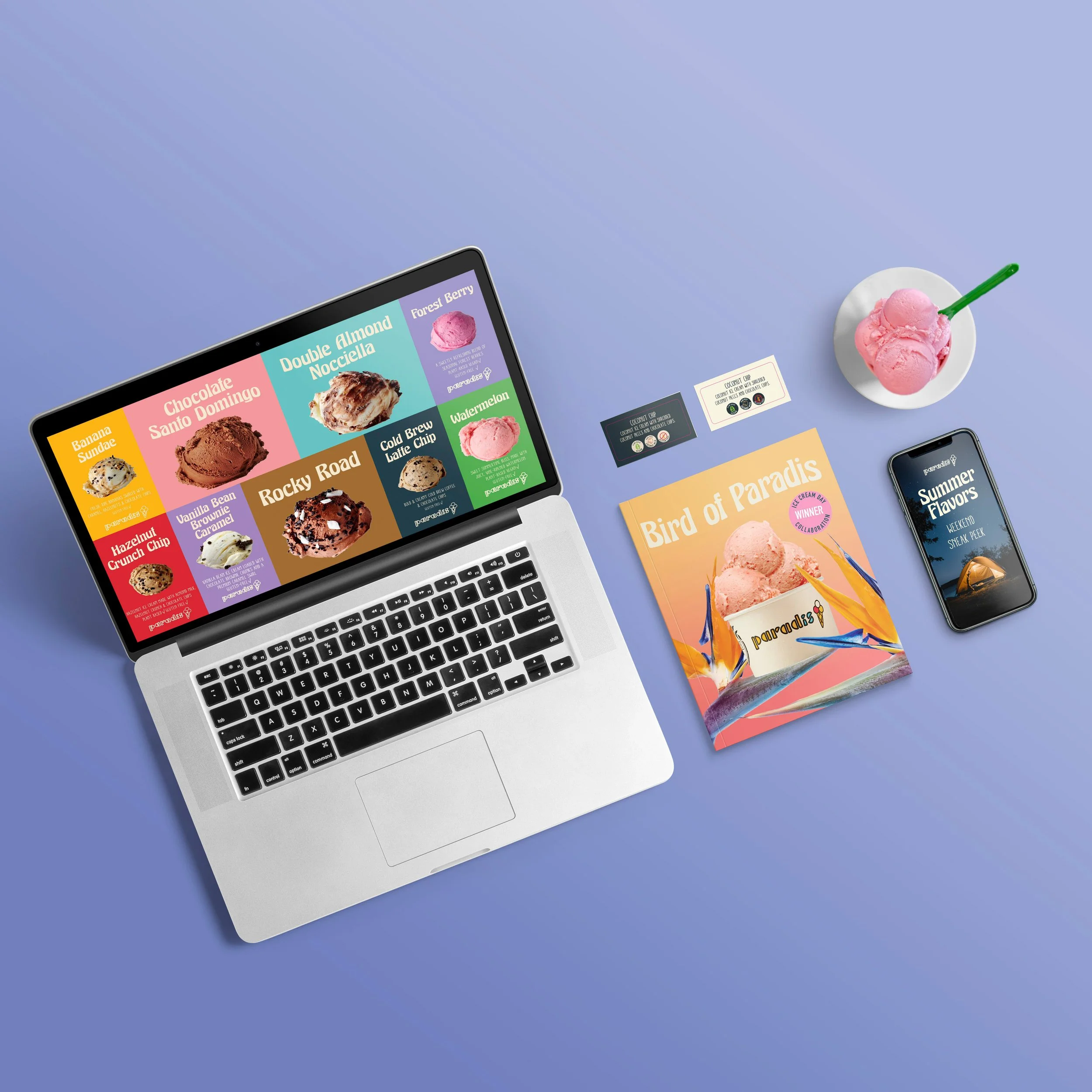 A Danish ice cream company expanding its presence in LA & Orange County. My refresh of their visual identity included social media graphics, in-store signage, and packaging.